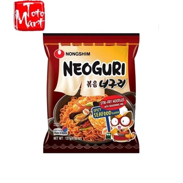 Mì xào khô Neoguri Mì xào khô Neoguri sản xuất từ những nguyên liệu chọn lọc, tươi ngon. Sợi mì dai giòn, súp thơm ngọt, cho món ăn đậm đà, hấp dẫn hương vị truyền thống của Hàn Quốc.