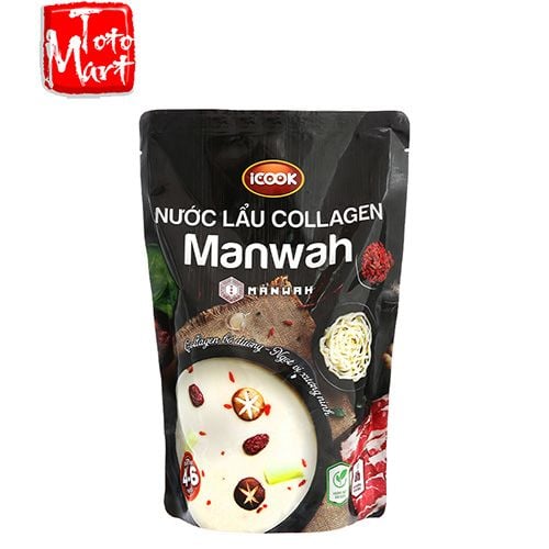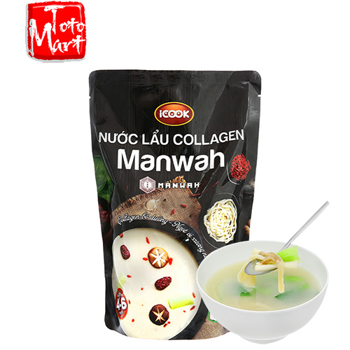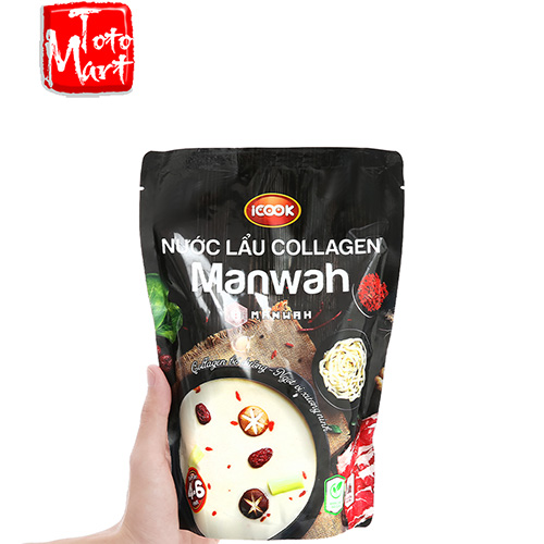 Nước lẩu Icook là loại sản phẩm làm sẵn ăn liền vô cùng tiện dụng, với thành phần thơm ngon tự nhiên, phù hợp nhiều đối tượng khách hàng. Nước lẩu Collagen Manwah Icook gói 1kg sản phẩm nước lẩu đông lạnh nêm nếm đậm đà cực ngon, chế biến nhanh chóng, tiết kiệm nhiều thời gian.