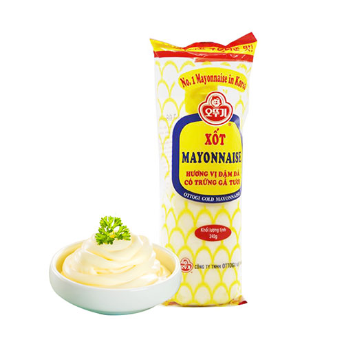 Sốt mayonnaise Ottogi có hương vị chua dịu, đậm đà, mềm và sánh mịn. Sốt dùng trộn với rau tươi để cho nhiều khoáng chất và vitamin cũng như làm món salad trở nên hấp dẫn hơn. Loại thực phẩm này có lợi cho sức khỏe. Sản phẩm được thiết kế dạng chai, tiện lợi cho việc sử dụng và bảo quản.Mayonnaise có vị chua beo béo, thơm ngon đã góp phần làm cho những món ăn, nhất là món chiên thêm ngon. Dưới đây là một số món ăn ngon miệng khi chế biến với mayonnaise.