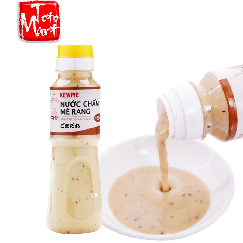 Nước chấm sốt mè rang Kewpie - chai 180ml đậm đà với sự kết hợp của hương vị mè rang và mù tạt tạo nên một loại nước chấm thơm ngon phù hợp để ăn cùng các món gà chiên giòn, gà hấp và các món gỏi trộn, salad rong nho biển...